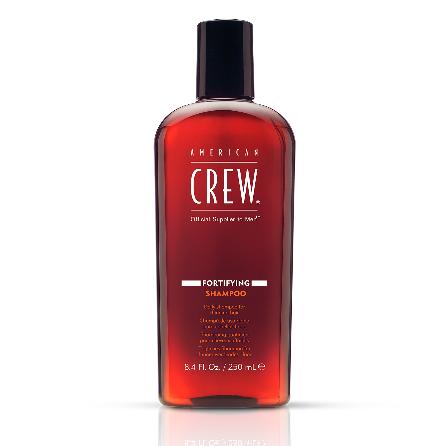 El American Crew Fortifying Shampoo 250 ml está formulado para hombres que experimentan debilitamiento o caída del cabello.