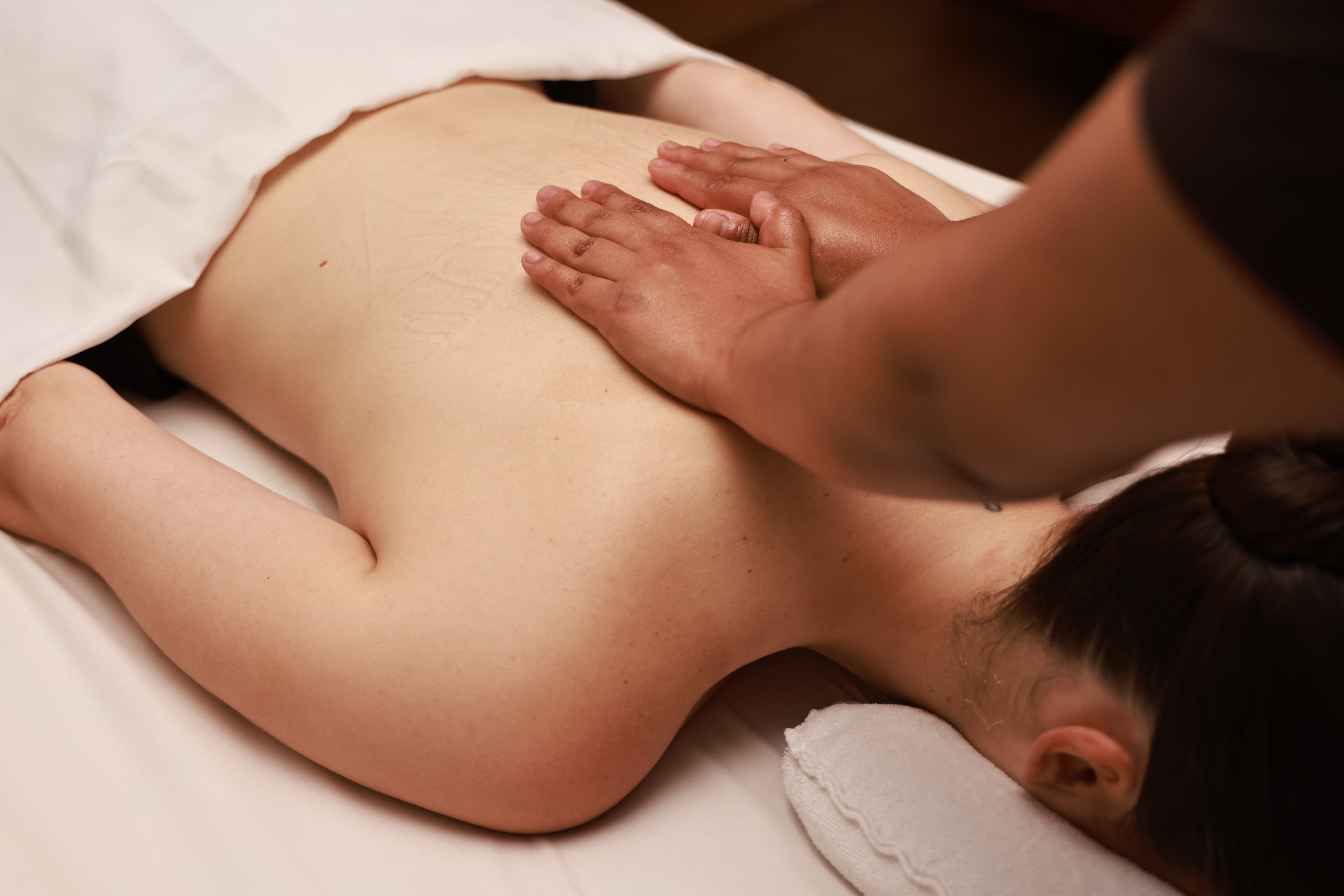 Es más intenso que una masaje relajante y se hace mayor énfasis en la zona afectada.